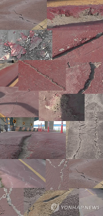 바닥에 굵은 금이 간 곳이 9곳, 1㎝ 이상 팬 곳이 6곳, 도로포장이 벗겨진 1곳, 도로 공사가 덜 된 듯 1m가량 포장이 끊긴 곳 1곳 등이었다.