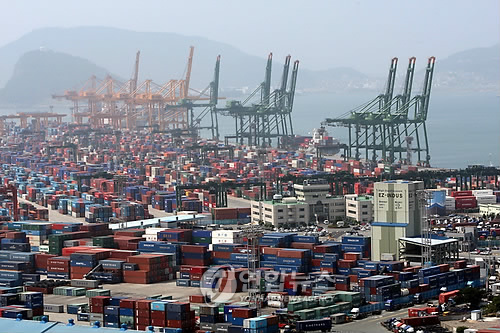 | △ 경제가 지난 1분기에 작년 4분기보다 0.8% 증가하는 데에 그쳐 4분기째 0%대의 저성장 국면을 이어갔다. 수출입화물로 산적한 부산항 (연합뉴스 자료사진) |