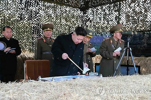 △ 북한 공군의 비행장 타격·복구 훈련 참관하는 김정은 국방위원회 제1위원장. 2015.3.20