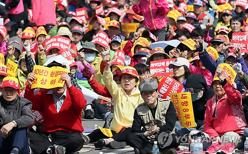 △ 인천항비대위 "8부두 개방·국제여객터미널 존치해야" (인천=연합뉴스) 윤태현 기자 = 인천시 중구 주민 등으로 구성된 '국제여객터미널 존치·내항 8부두 전면 개방 비상대책위' 회원들이 23일 오후 중구 항동 인천우체국 앞 공영주차장에서 집회를 열고 있다. 2015.4.23 tomatoyoon@yna.co.kr