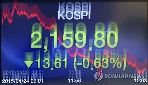 24일 코스피는 전날보다 13.61포인트(0.63%) 내린 2,159.80으로 마감했다.