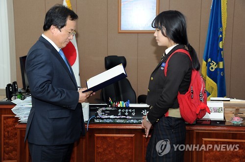용감한 '빨간 가방 여고생' 부산교육감 표창 받아