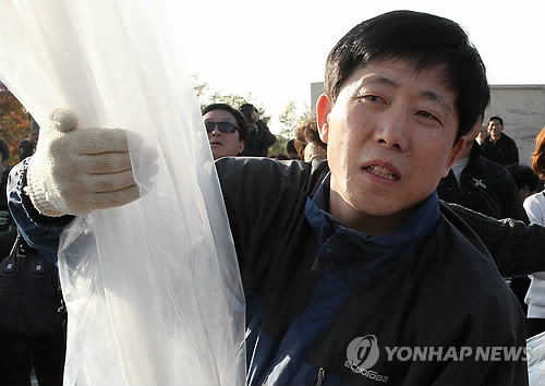 △ 박상학 자유북한운동연합 대표. 박 씨는 지난 3월 대북전단 살포를 당분간 전면 중단하겠다고 밝혔으나 4월 21일 인천시 강화군에서 대북전단 15만장과 영화 '더 인터뷰' USB·DVD 각 2천500개씩 총 5천개를 풍선에 달아 날려보냈다. <<연합뉴스DB>>