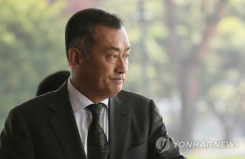 | △ 중앙지검 들어서는 장세주 동국제강 회장 (서울=연합뉴스) 박지호 기자 = 100억대 회삿돈을 빼돌려 상습도박을 한 혐의를 받고 있는 장세주 동국제강 회장이 21일 오전 피의자 신분으로 조사를 받기 위해 서초동 서울중앙지검으로 들어서고 있다. 2015.4.21 jihopark@yna.co.kr |