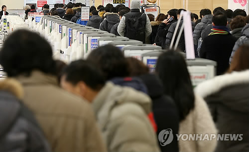 △ 서울 시내 한 대형마트 완구 코너에서 아이에게 줄 장난감을 사기 위해 줄을 서서 기다리고 있다. (연합뉴스 자료사진)