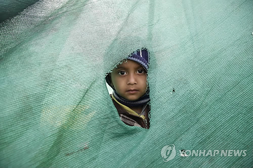 △ 대참사 속 아이의 눈빛… (카트만두 EPA=연합뉴스) 27일(현지시간) 대지진이 강타한 네팔 수도 카트만두에서 찢어진 천막 사이로 한 어린이가 카메라를 응시하고 있다. 지난 25일 발생한 지진으로 인한 사망자가 3천200명을 넘어섰다. 2010596@yna.co.kr