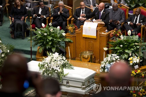(워싱턴=연합뉴스) 심인성 특파원 = 미국 메릴랜드 주 볼티모어에서 구금 중 사망한 흑인 용의자 프레디 그레이(25)의 장례식이 27일(현지시간) 볼티모어의 뉴 실로 침례교회에서 열렸다.