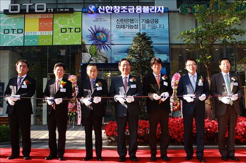 (서울=연합뉴스) 고동욱 기자 = 신한금융그룹은 28일 성남시 신한은행 판교테크노밸리 금융센터에서 중소·중견기업에 종합적인 기업투자금융(CIB) 솔루션을 제공하는 '신한 창조금융플라자' 출범식을 열었다.
