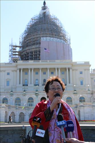 일본군 위안부 피해자인 이용수 할머니와 워싱턴DC와 버지니아, 메릴랜드 등 인근 지역의 한·미·중 시민단체는 아베 총리의 연설을 하루 앞둔 28일(현지시간) 미 의사당 앞에 모여 아베 총리의 그릇된 역사관을 한목소리로 규탄했다.