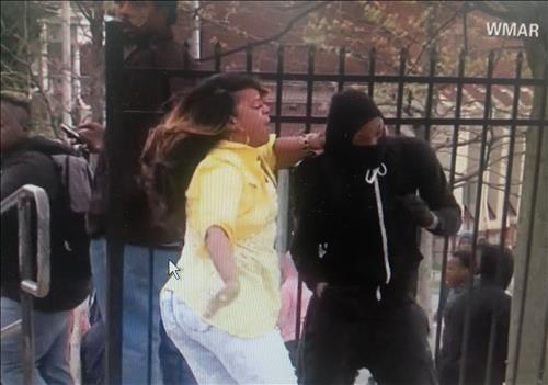 28일(현지시간) 워싱턴포스트(WP), CBS 등 미 언론에 따르면 지난 27일 볼티모어지역방송 WMAR 카메라에 잡혀 공개된 이 영상에는 볼티모어 시내에서 한 흑인 여성이 10대로 보이는 흑인 소년을 손바닥으로 사정없이 내려치는 모습이 담겼다.