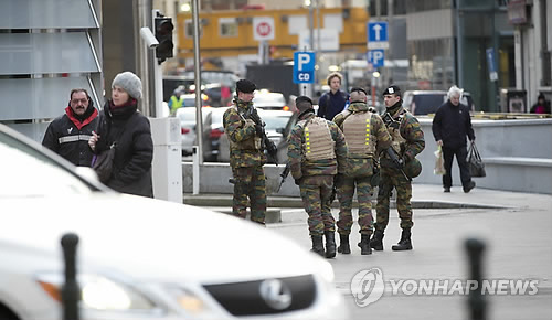 △ (AP=연합뉴스) 유럽연합(EU) 정상들이 2월 12일 벨기에 브뤼셀에서 열린 특별 정상회의에서 지난달 프랑스 파리 테러 이후 고조된 EU 내 테러 위협에 대처하기 위한 공동 대응 방안에 합의했다. 이 대테러 공조 방안은 회원국 간 항공기 탑승객 명단 공유, 국경 출입 관리 강화와 인터넷에서 극단주의를 부추기는 콘텐츠의 적발 및 삭제 등을 골자로 하고 있다. 사진은 지난 2일 벨기에 군인들이 브뤼셀의 EU 본부 주변을 순찰하는 모습.