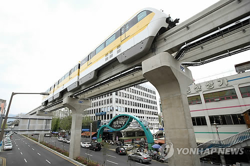 (대구=연합뉴스) 최수호 기자 = 전국 처음으로 모노레일로 건설한 대구도시철도 3호선 '하늘 열차'를 이용한 승객이 개통 1주일만에 50만명을 넘었다.