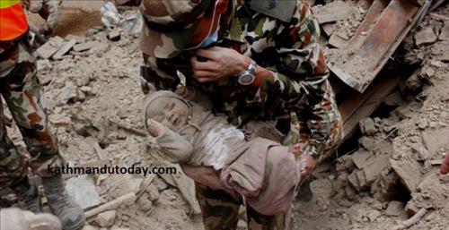 <네팔 지진> 생후 넉달 아기, 잔해더미서 22시간 만에 구조