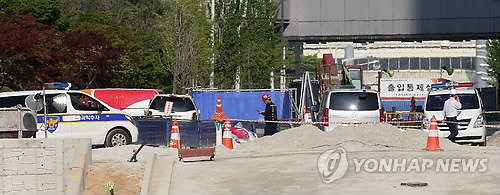| △ 지난달 30일 질소가스가 누출돼 작업자 3명이 숨진 경기도 이천시 부발읍 SK 하이닉스 신축 공사 현장에서 경찰 관계자들이 사고원인 조사를 벌이고 있다. |