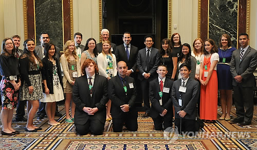 (워싱턴=연합뉴스) 노효동 특파원 = 삼성전자가 지난 29일 (현지시간) 미국 워싱턴DC 로널드 레이건 빌딩에서 의회 지도자들과 정부 관계자들이 모인 가운데 '2015 솔브 포 투모로우'(Solve for Tomorrow) 시상식을 개최했다.