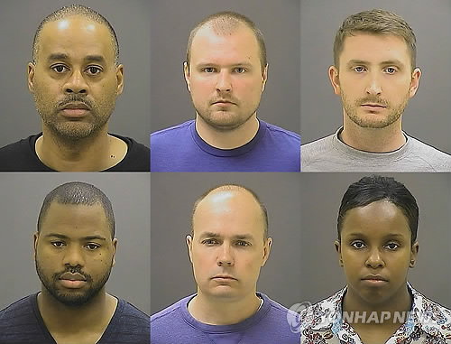 (서울=연합뉴스) 권수현 기자 = 미국 메릴랜드 주 검찰이 볼티모어 흑인 청년 프레디 그레이(25) 사망 사건 관련 경찰관 6명을 1일(현지시간) 살인 등 혐의로 기소했다.
