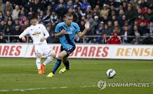기성용은 2일(현지시간) 영국 웨일스의 리버티 스타디움에서 열린 2014-2015 잉글랜드 프로축구 프리미어리그 스토크시티와의 홈 경기에서 후반 추가시간 쐐기골을 터뜨리며 팀의 2-0 승리에 큰 힘을 보탰다.