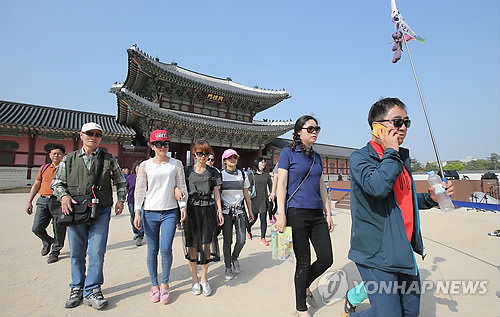 | △ 중국 노동절 연휴를 맞아 한국을 찾은 유커들이 1일 오후 서울 경복궁을 둘러보고 있다. |