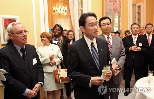 | △ 기시다 후미오 일본 외무상(가운데)이 쿠바 수도 아바나를 방문해 2일(현지시간) 아바나 주재 일본 대사관에서 열린 행사에 참석했다.(EPA=연합뉴스) |