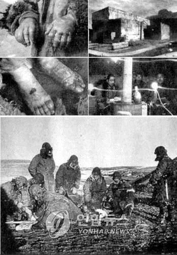△ 731부대 생체동상실험. 중국 헤이룽장(黑龍江)성 하얼빈(哈爾濱)시 핑팡구 정부와 중국사회과학원이 공개한 극비문서를 흑룡강신문이 과거 보도한 사진.(연합뉴스DB)