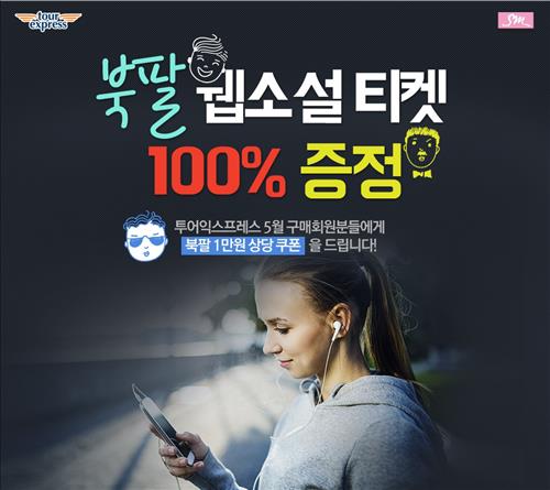 (서울=연합뉴스) 전준상 기자 = SM C&C 투어익스프레스는 이달 여행상품을 구매하는 고객에게 웹소설업체 '북팔'의 1만원 상당 웹소설 티켓을 증정한다고 4일 밝혔다.