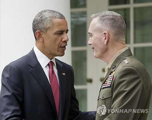 (워싱턴=연합뉴스) 김세진 특파원 = 미국의 차기 합참의장으로 조지프 던포드 해병사령관이 지명되자 정치권에서는 미군의 개입을 최소화하는 현재의 전략을 유지하기 위한 인선이라는 해석이 지배적이다.