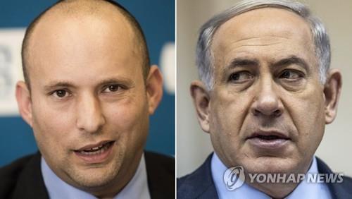 | △ 막판 연정 구성에 합의한 베냐민 네타냐후 이스라엘 총리(우)와 극우성향 유대인가정당의 나프탈리 베넷 당수(좌) 2015.5.7 (EPA=연합뉴스) |
