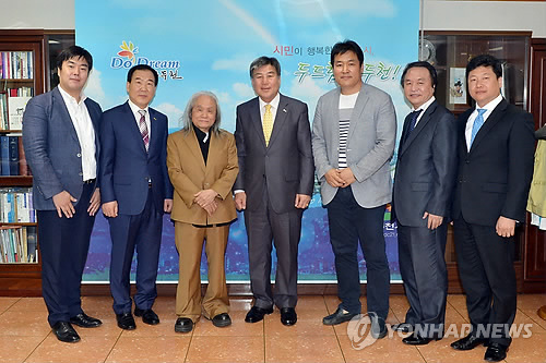 | △ 신중현, 동두천시청 방문 (동두천=연합뉴스) 지난 6일 경기도 동두천시청을 찾은 '록의 대부' 신중현(왼쪽에서 세번째)씨와 오세창 동두천시장(가운데)을 비롯한 관계자들이 기념 촬영을 하고 있다. 시는 신씨를 초청해 'K-록(Rock) 빌리지'와 관련한 의견을 나눴다고 7일 밝혔다. 2015.5.7<<동두천시>> suki@yna.co.kr |
