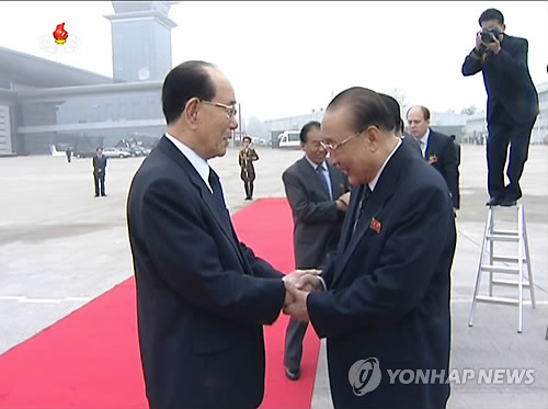 (서울=연합뉴스) 오예진 기자 = 김영남 북한 최고인민회의 상임위원장이 8일 오후 러시아 제2차 세계대전 승리 70주년(전승절) 행사 참석을 위해 평양을 출발했다고 조선중앙통신이 보도했다.
