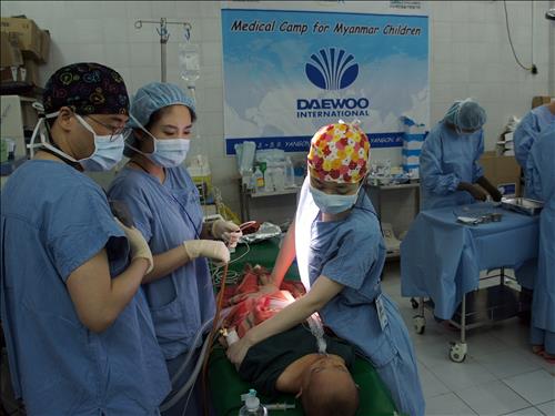 | △ 대우인터내셔널이 세민얼굴기형돕기회, 분당서울대병원 의료진과 함께 4∼8일 미얀마 양곤 종합병원에서 함께 안면기형 어린이를 위한 의료캠프를 열었다. |