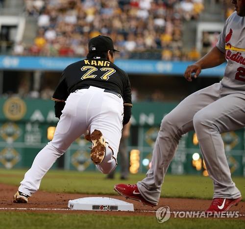 2회말 무사 1루에서 첫 타석에 들어선 강정호는 상대 오른손 선발 카를로스 마르티네스의 시속 154㎞짜리 직구를 받아쳐 3루수 앞으로 향하는 느린 타구를 쳤다.