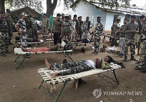 | △ 올해 4월11일 인도 차티스카르 주 수크마 지역에서 마오주의 반군의 공격으로 다친 인도 경찰들이 누워있다.(AP=연합뉴스DB) |