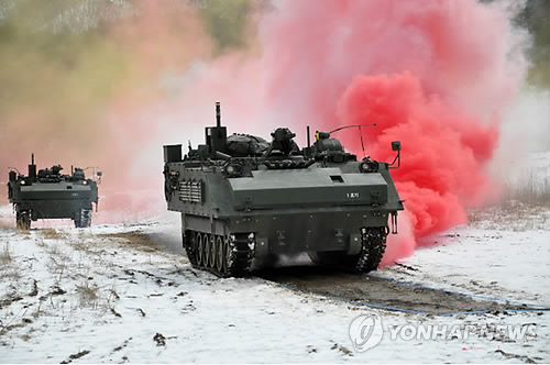 △ 국내 기술로 개발한 신형 화생방정찰차 (서울=연합뉴스) 국내 기술로 개발된 신형 화생방정찰차의 모습. 방위사업청은 11일 국내 방산업체 두산DST가 개발한 화생방정찰차가 시험 평가 결과 '전투용 적합' 판정을 받았다고 밝혔다. 신형 화생방정찰차는 국방과학연구소에서 개발한 원거리 화학 자동경보기와 화생 겸용 자동탐지기를 탑재해 작전 성능이 크게 개선됐다. 화생방정찰차를 자체적으로 개발한 국가는 미국과 독일에 이어 한국이 세 번째다. 2015.5.11 <<방위사업청 제공>> photo@yna.co.kr