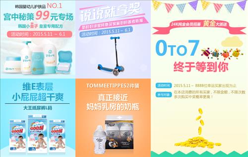 구매 순서에 따라 추첨으로 순금을 차등 지급하는 '0to7을 찾아라, 황금을 잡아라' 이벤트와 프리미엄 한방 유아 스킨케어 궁중비책 제품을 99위안에 판매하는 '한국 유아 화장품 no.1 궁중비책 99위안의 기회' 등을 진행한다.