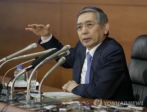 | △ 구로다 하루히코 일본은행 총재(EPA.연합뉴스.자료사진) |