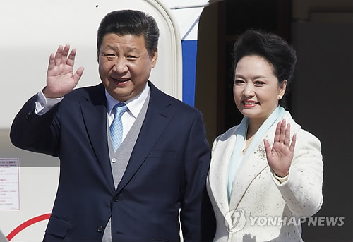 | △ (모스크바 AP=연합뉴스) 시진핑(習近平) 중국 국가주석과 부인 펑리위안(彭麗媛) 여사가 8일(현지시간) 러시아 브누코보 국제공항에 도착해 비행기 트랩 위에서 반갑게 손을 흔들고 있다. kjw@yna.co.kr Chinese President Xi Jinping and his wife Peng Liyuan wave shortly upon their arrival to Vnukovo II government airport in Moscow, Russia, on Friday, May 8, 2015. (AP Photo/Ivan Sekretarev) |