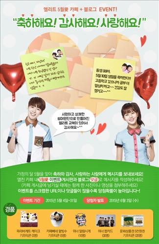 (서울=연합뉴스) 전준상 기자 = 엘리트베이직의 학생복 브랜드 엘리트는 가정의 달인 5월을 맞아 공식 온라인 커뮤니티인 카페·블로그·카카오스토리에서 '사랑의 댓글 이벤트'를 진행한다.
