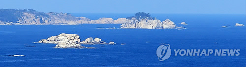 | △ 적막감 감도는 해금강 (고성=연합뉴스) 이종건 기자 = 금강산관광 16주년 기념식을 위해 현정은 현대그룹회장을 비롯해 조건식 현대아산사장과 임직원들이 금강산을 다녀온 18일 동해안 최북단 통일전망대에서 바라 본 해금강 지역. 적막감이 감도는 가운데 고기잡이 나선 북한 어선들의 모습이 카메라에 잡혔다. 2014.11.18 momo@yna.co.kr |