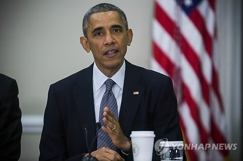 | △ (EPA=연합뉴스) 버락 오바마 미국 대통령이 지난해 12월 11일(현지시간) 워싱턴에서 대통령 직속기구인 수출위원회 회의에 참석한 모습. 오바마 대통령은 이 자리에서 환태평양경제동반자협정(TPP) 협상의 타결 가능성에 대해 "강한 합의를 끌어낼 확률이 50대 50보다는 훨씬 높다고 생각한다"고 낙관했다. 2014.12.11 EPA/JIM LO SCALZO |