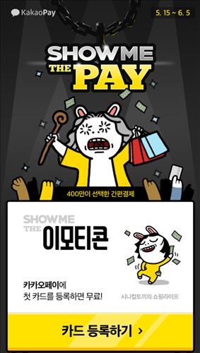 이달에는 카카오페이 이용자 400만 달성 및 신규 가맹점 오픈을 기념해 첫 카드 등록 고객에게 인기 이모티콘을 제공하는 등 자체 고객 프로모션과 가맹점별 이벤트를 진행한다.