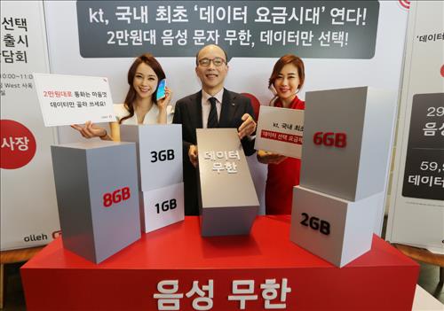 (서울=연합뉴스) 현윤경 기자 = KT[030200]의 '데이터 선택 요금제'가 출시 나흘 만에 가입자 10만 명을 모으는 등 큰 인기를 끌고 있는 가운데 업계 선두인 SK텔레콤[017670]과 후발주자 LG유플러스[032640]도 비슷한 요금제를 곧 공개한다.