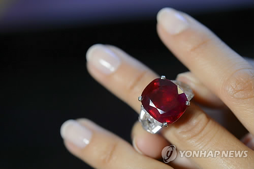 (제네바=연합뉴스) 류현성 특파원 = 스위스 제네바 소더비 경매에서 짙은 홍색의 25.59 캐럿 미얀마산 루비 반지가 역대 최고가격인 3천33만 달러(약 333억여원)에 낙찰됐다고 스위스 언론이 13일(현지시간) 보도했다.