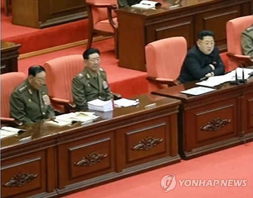 △ '불경죄 처형' 북한 현영철, 김정은 옆에서 졸았나 (서울=연합뉴스) 김정은 북한 국방위원회 제1위원장이 지난달 30일 '불경죄'로 숙청한 현영철 전 인민무력부장(좌측 첫 번째)이 같은 달 24∼25일 김 제1위원장이 주재한 조선인민군 제5차 훈련일꾼대회에서 조는 듯한 모습이 포착돼 눈길을 끈다. 사진은 노동신문이 지난달 26일 보도한 것으로 김 제1위원장이 회의를 진행 중인 가운데 현 전 부장이 눈을 감고 몸을 앞으로 기울이고 조는 듯이 앉아 있어 꼿꼿한 자세로 정면을 응시하는 황병서 군 총정치국장과 대조된다.