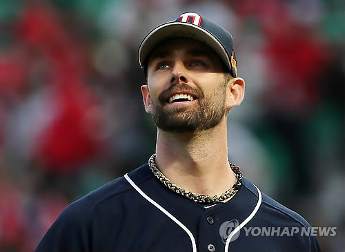 | △ 환하게 웃는 니퍼트 (인천=연합뉴스) 윤태현 기자 = 13일 인천 SK행복드림구장에서 열린 프로야구 두산 베어스와 SK 와이번스의 경기. 2회말을 무실점으로 마친 두산 투수 니퍼트가 환하게 웃으며 더그아웃으로 들어오고 있다. 2015.5.13 tomatoyoon@yna.co.kr |