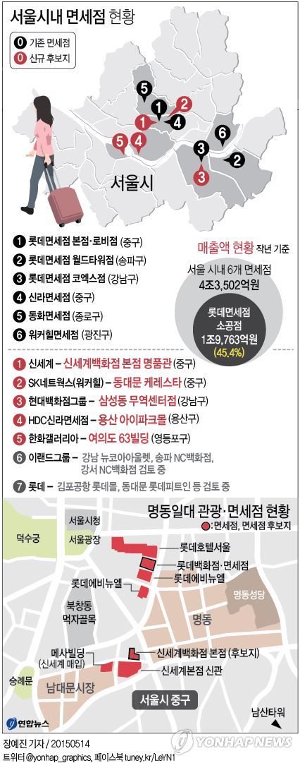 현재 명동에는 서울시내 면세점 가운데 가장 많은 매출을 올리는 롯데면세점 소공점이 있다. 여기에 신세계 본점 명품관이 신규 면세점으로 확정되면 명동은 그야말로 면세점 왕국으로 거듭나게 된다.