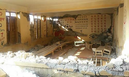 | △ 지진으로 붕괴된 기아대책 협력학교인 네팔 쩐띠부미 초등학교 모습. << 기아대책 제공 >>(연합뉴스 자료사진) |