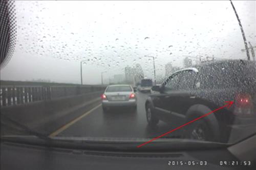 (서울=연합뉴스) 이대희 기자 = 경차가 고속도로에서 끼어들기를 허락하지 않았다는 이유로 2.7㎞를 추격하며 빗길에서 보복 운전을 한 스포츠유틸리티차량(SUV) 운전자가 경찰에게 붙잡혔다.