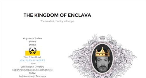 폴란드인인 피오트르 바브리진키에비치와 동료들은 최근 슬로베니아를 방문한 뒤 크로아티아 자그레브에서 슬로베니아 국경 쪽으로 50㎞ 떨어진 일대를 '엔클라바(재외 내륙국이라는 뜻) 왕국'으로 일방 선포했다고 AFP 통신이 15일 보도했다.