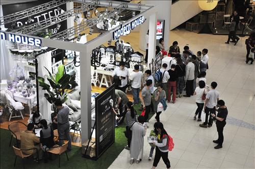 | △ 상하이 스카이몰 쇼핑몰 1층에서 운영 중인 모던하우스 팝업스토어. 모던하우스는 오는 30일 이 쇼핑몰에 정식 매장을 열 예정이다. |
