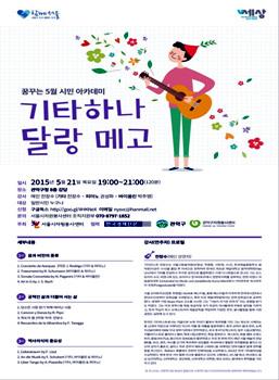 (서울=연합뉴스) 황희경 기자 = 서울시자원봉사센터는 21일 오후 7시 관악구청 대강당에서 연주와 해설이 있는 시민아카데미 '기타 하나 달랑 메고' 행사를 연다고 18일 밝혔다.